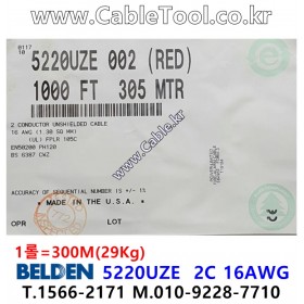 벨덴케이블 BELDEN 5220UZE, 300m, 002(Red) BELDEN, 300m, 2C 16AWG, FPLR-CI, 300 V RMS(UL)