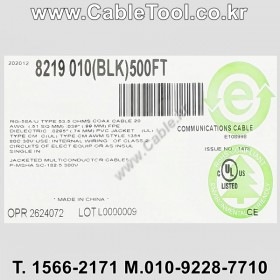 벨덴케이블 BELDEN 8219, 150m, 1Coax 20AWG, RG58A, 54 Ohm Wireless Transmission Coax, UL1354, CM, UL1685 UL Loading