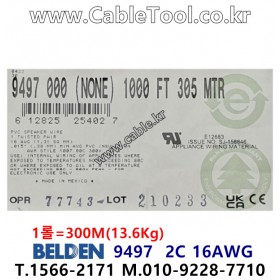 벨덴케이블 BELDEN 9497, 300m, 2C 16AWG, ETP 고전도 주석도금 선재 스피커 케이블, UL AWM 1007, VW-1