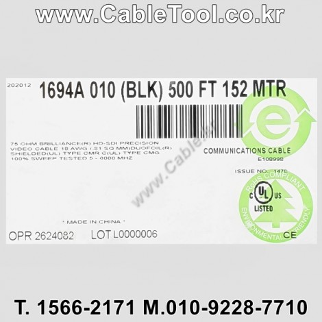 | 제조자 | 벨덴케이블 BELDEN Cable 한국총판 케이블툴㈜ www.CableTool.co.kr |