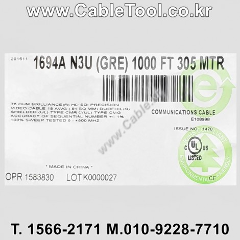 | 제조자 | 벨덴케이블 BELDEN Cable 한국총판 케이블툴㈜ www.CableTool.co.kr |