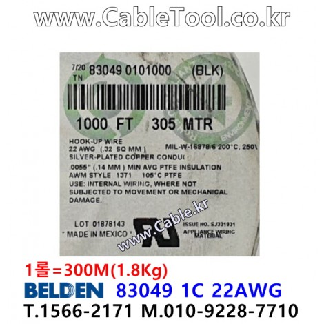 벨덴케이블 BELDEN 83049 010(Black) 1C 22AWG (300m) > 벨덴케이블 Hook Up Wire