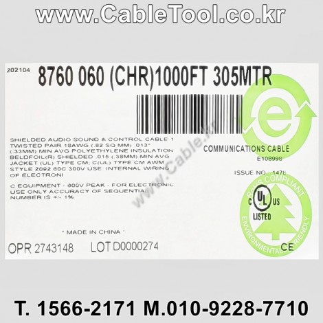 | 제조자 | 벨덴케이블 BELDEN Cable 한국총판 케이블툴㈜ www.CableTool.co.kr |