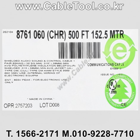 | 제조자 | 벨덴케이블 BELDEN Cable 한국총판 케이블툴㈜ www.CableTool.co.kr |