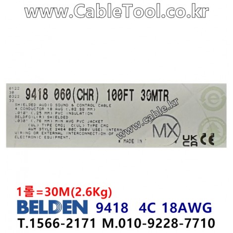벨덴 9418 BELDEN (30m) > 벨덴케이블 Multi Conductor| 품명 | 상품페이지 참고 |