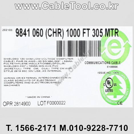 | 제조자 | 벨덴케이블 BELDEN Cable 한국총판 케이블툴㈜ www.CableTool.co.kr |