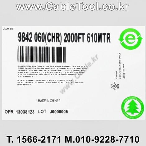 | 제조자 | 벨덴케이블 BELDEN Cable 한국총판 케이블툴㈜ www.CableTool.co.kr |