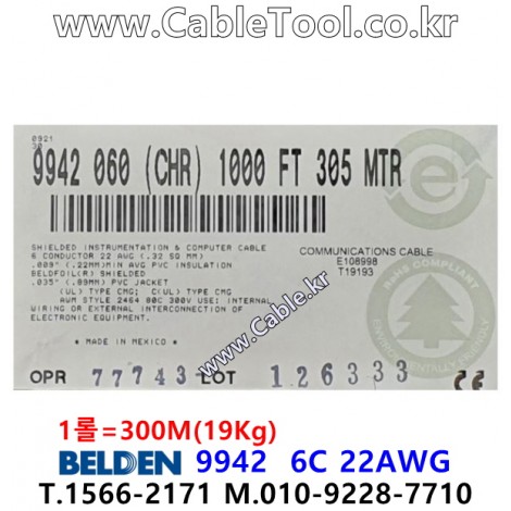 벨덴 9942 BELDEN (300m) > 벨덴케이블 Multi Conductor| 품명 | 상품페이지 참고 |