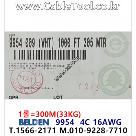 벨덴 9954 BELDEN (300m) > 벨덴케이블 Multi Conductor| 품명 | 상품페이지 참고 |
