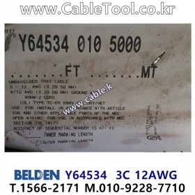 벨덴케이블 BELDEN Y64534, 10m, 3C 12AWG, 600V TC-ER, BELDEN 28110A but Core Color: Black, Red, Green Option