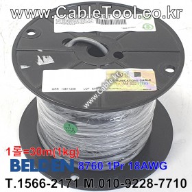 벨덴케이블 BELDEN 8760, 30m, 1Pair 18AWG, CM, UL 2092, UL1685 (UL Loading), IEC 60332-1-2