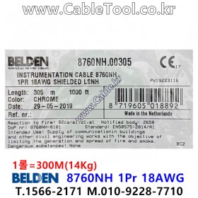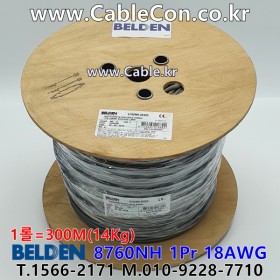 벨덴케이블 BELDEN 8760NH, 300m, 1Pair 18AWG, LSZH, CPR B2ca-s1,d1,a1, IEC 60332-1-2 and IEC 60332-3-24, IEC 60754-1 and 2