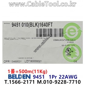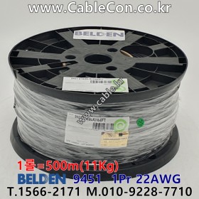 벨덴케이블 BELDEN 9451, 500m, 1Pair 22AWG, UL CMR, 라인레벨 아날로그 오디오 케이블