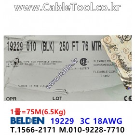 벨덴케이블 BELDEN 19229, 75m, 3C 18AWG, UL AWM SJO, 300V, CPE Outer Jacket