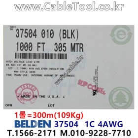 벨덴케이블 BELDEN 37504, 300m, 1C 4AWG, UL AWM 3499, 7500V, 150°C, Rubber Lead Wire 케이블