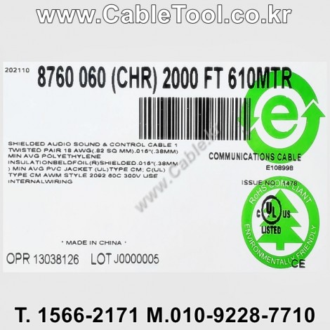 | 제조자 | 벨덴케이블 BELDEN Cable 한국총판 케이블툴㈜ www.CableTool.co.kr |
