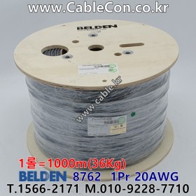 벨덴케이블 BELDEN 8762, 1000m, 1Pair 20AWG, UL AWM 2092, 오디오, 제어 & 계장용 케이블