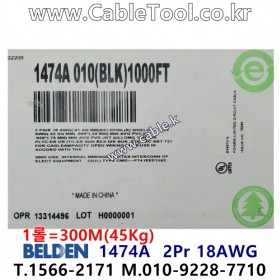 벨덴케이블 BELDEN 1474A, 300m, 2Pair 18AWG, 300V PLTC-ER, 산업용 제어 및 계장용 케이블