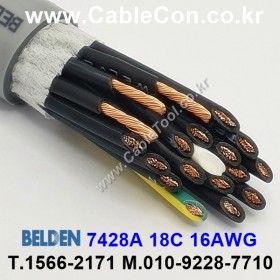 벨덴케이블 BELDEN 7428A, 300m, 18C 16AWG / 16 AWG stranded (26x30) bare copper conductors. PVC insulation . unshielded. oil- and abrasion-resistant PVC jacket.
