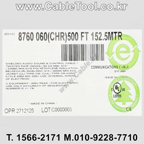 | 제조자 | 벨덴케이블 BELDEN Cable 한국총판 케이블툴㈜ www.CableTool.co.kr |