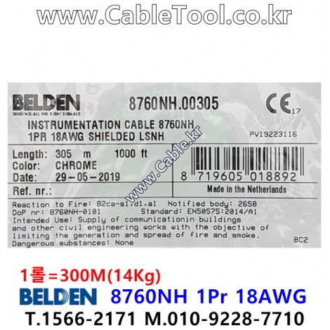 | 제조자 | 벨덴케이블 BELDEN Cable 한국총판 케이블툴㈜ www.CableTool.co.kr |