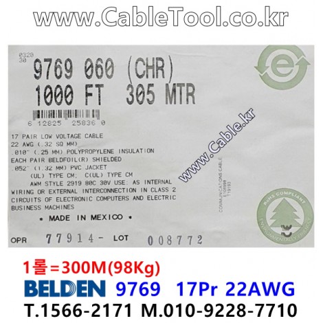 벨덴케이블 9769 BELDEN 오디오멀티 (300m) > 벨덴케이블 UL/CSA 300V계장용| 품명 | 상품페이지 참고 |