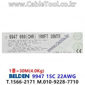 벨덴케이블 9947 BELDEN (30m) > 벨덴케이블 RS232 & RS423BELDEN 9947, RS 232, 15C x 22(7X30)AWG,호일+편조차폐, PVC Jacket, UL AWM 2464, CMG