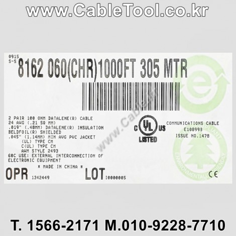 | 제조자 | 벨덴케이블 BELDEN Cable 한국총판 케이블툴㈜ www.CableTool.co.kr |