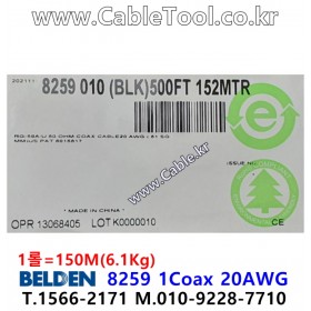 벨덴케이블 BELDEN 8259, 150m, 1Coax 20AWG, RG58A/U, 50 Ohm Wireless Transmission Coax Cable