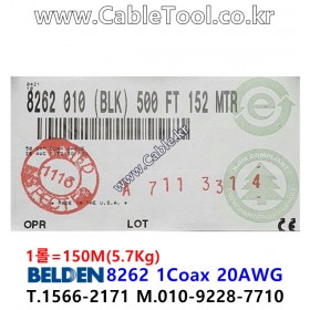 벨덴케이블 BELDEN 8262, 150m, 1Coax 20AWG, RG58C/U, M17/155-00001, 50 Ohm Coax Cable