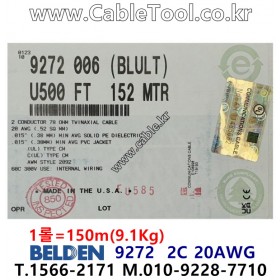 BELDEN 9272, 150m, 2C 20AWG, 78 Ohm Twinax, NEC/UL CM, UL AWM 2092 (300V 60℃)