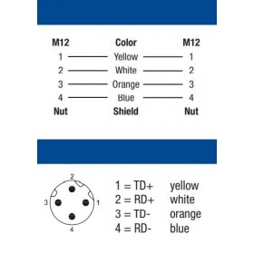 PROFINET Data cable According type C, 양단 코드셋(M12 Male Connector, M12 Male Connector, D Coding), Cat5E, High-Flex, 4핀(2Pair x 22AWG), Stranded/Shielded, PUR Halogen-Free Jacket