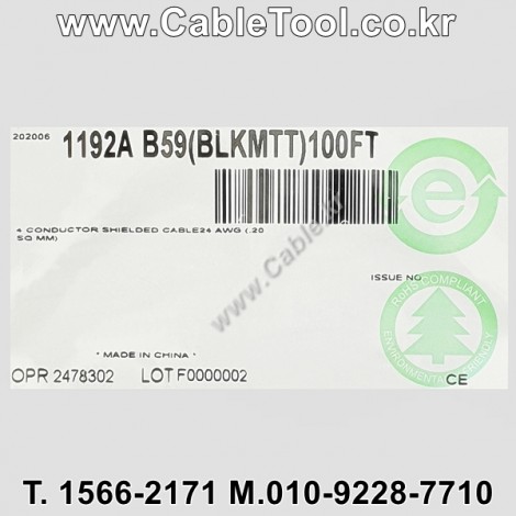 | 제조자 | 벨덴케이블 BELDEN Cable 한국총판 케이블툴㈜ www.CableTool.co.kr |
