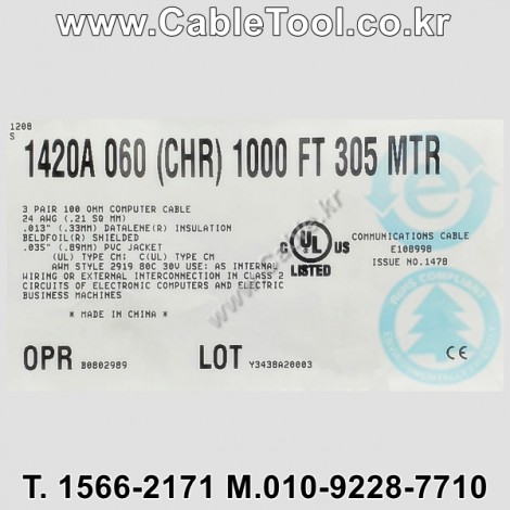 벨덴케이블 1420A BELDEN (Chrome 300m) > 벨덴케이블 RS422 | 품명 | 상품페이지 참고 |