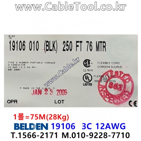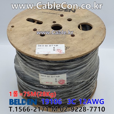 벨덴케이블 BELDEN 19106, 75m, 3C 12AWG, UL Type S, CSA FT2, 600V RMS(UL)