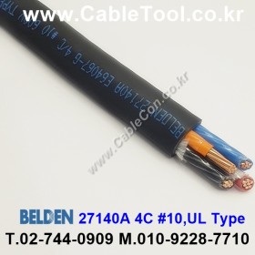 벨덴케이블 BELDEN 27140A, 300m, 4C #10,UL Type UL Type TC (1277) PVC-Nylon/PVC, 4 Conductor 10AWG (7x18) Bare Copper, PVC-NYL Insulation E2 Color Code, Black PVC Outer Jacket, 600V TC 90C Dry/Wet SUN RES DIR BUR