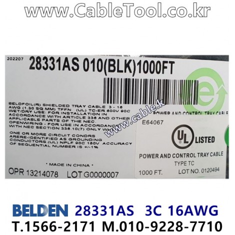 벨덴케이블 BELDEN 28331AS, 300m, 3C 16AWG, 600V TC-ER, 전원 및 제어용 케이블
