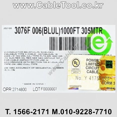 벨덴케이블 3076F BELDEN (Blue 300m) > 벨덴케이블 Foundation Fieldbus | 품명 | 상품페이지 참고 |