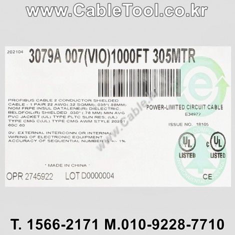 벨덴케이블 3079A BELDEN (Violet 300m) > 벨덴케이블 PROFIBUS | 품명 | 상품페이지 참고 |