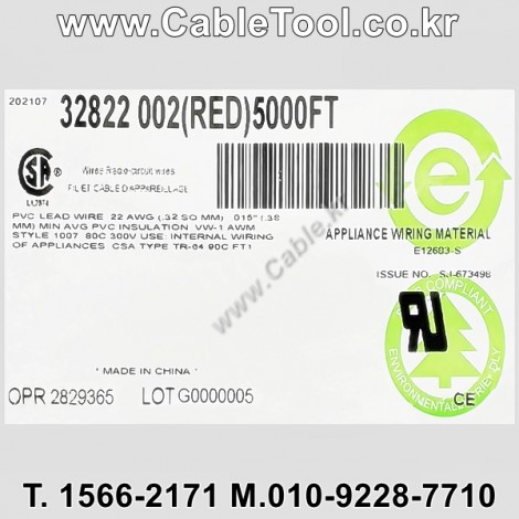 벨덴케이블 BELDEN 32822 002(Red) 1C 22AWG (1500m) > 벨덴케이블 Hook Up Wire카다로그 바로가기: http://www.Cable.kr