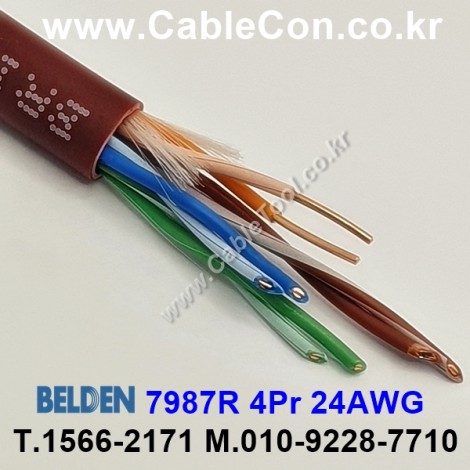 벨덴케이블 BELDEN 7987R, 300m, 4Pr 24AWG / NanoSkew™ 4-24 AWG pairs, CMR / NanoSkew™ 24 AWG twisted pairs solid bare copper conductors, non-plenum, polyolefin insulation, skew 2.2ns/100m nominal, rip cord, PVC jacket.