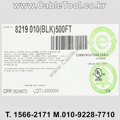 벨덴케이블 8219 BELDEN (150m) > 벨덴케이블 RG58 50옴 동축케이블| 품명 | 상품페이지 참고 |