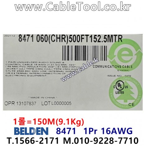 벨덴케이블 8471 BELDEN 주석도금 (Chrome 150m) > 벨덴케이블 LonWorks | 품명 | 상품페이지 참고 |