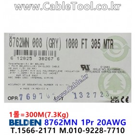 벨덴케이블 BELDEN 8762MN 008(Gray), 300m, 1Pair 20(26x34)AWG, UL 2937, CSA FT2, NFPA 79