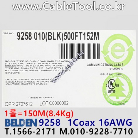 벨덴케이블 9258 BELDEN (Black 150m) > 벨덴케이블 RG8 50옴 동축케이블| 품명 | 상품페이지 참고 |
