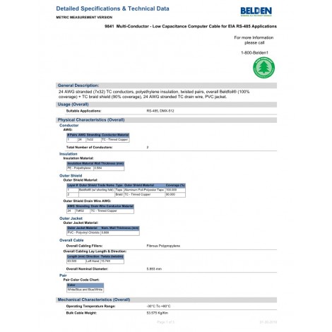 | 제조자 | 벨덴케이블 BELDEN Cable 한국총판 케이블툴㈜ www.CableTool.co.kr |