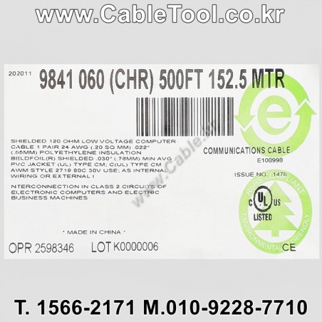 벨덴케이블 9841 BELDEN RS485 (150m) > 벨덴케이블 RS485 | 품명 | 상품페이지 참고 |