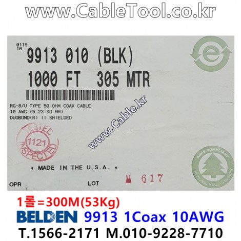 벨덴케이블 9913 BELDEN (Black 300m) > 벨덴케이블 RG8 50옴 동축케이블| 품명 | 상품페이지 참고 |