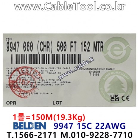 | 제조자 | 벨덴케이블 BELDEN Cable 한국총판 케이블툴㈜ www.CableTool.co.kr |