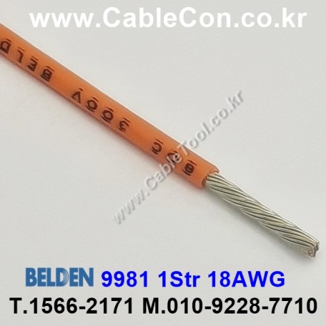 벨덴케이블 BELDEN 9981, 300m, 1Str 18AWG / Lead Wire, #18 Str TC, PVC Ins, AWM 1061 / Low Temp Plastic Lead Wire, 18AWG (19x30) Tinned Copper, PVC Insulation, AWM 1061 CSA AWM 300V 80C